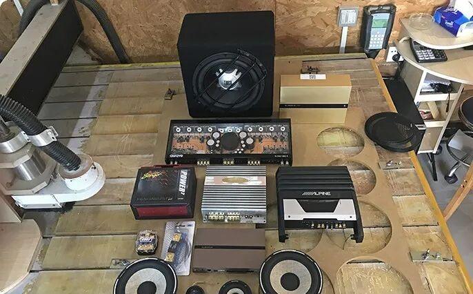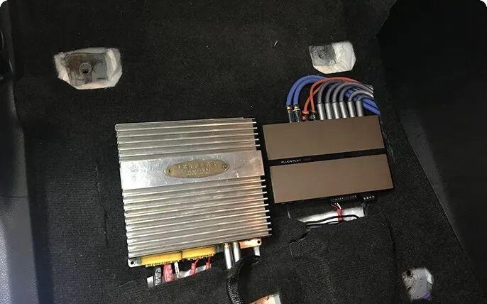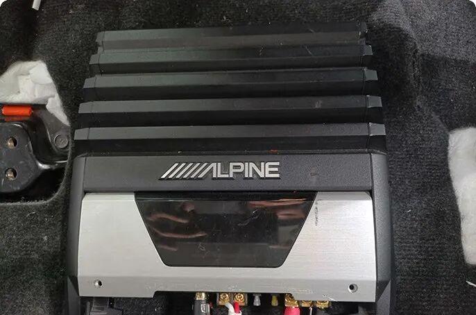 Alpine single-channel power amplifier, which is specially designed to drive subwoofer, is placed in a reasonable position to ensure heat dissipation and minimize signal path.