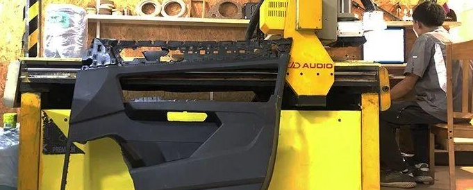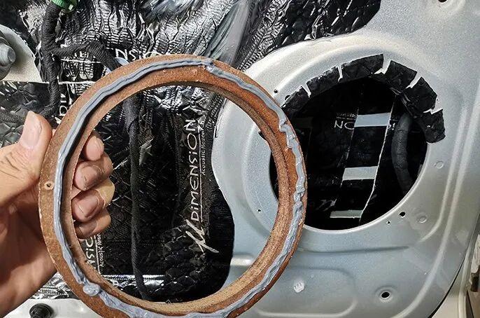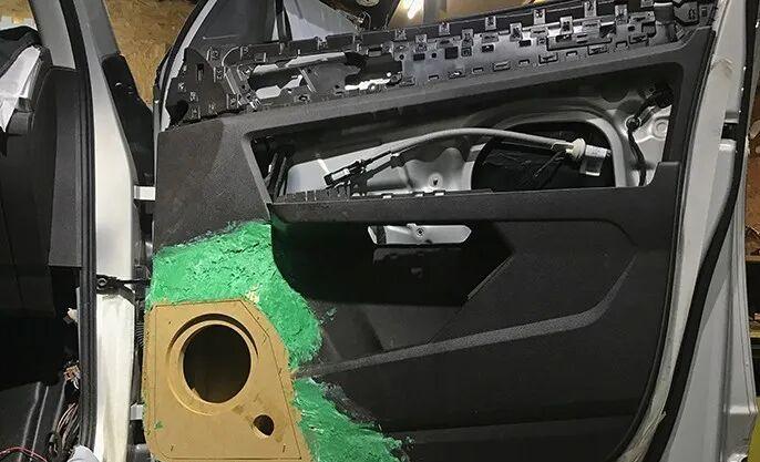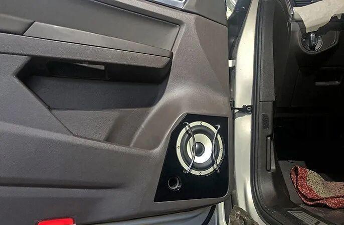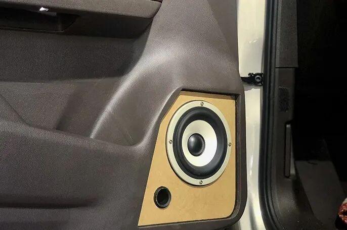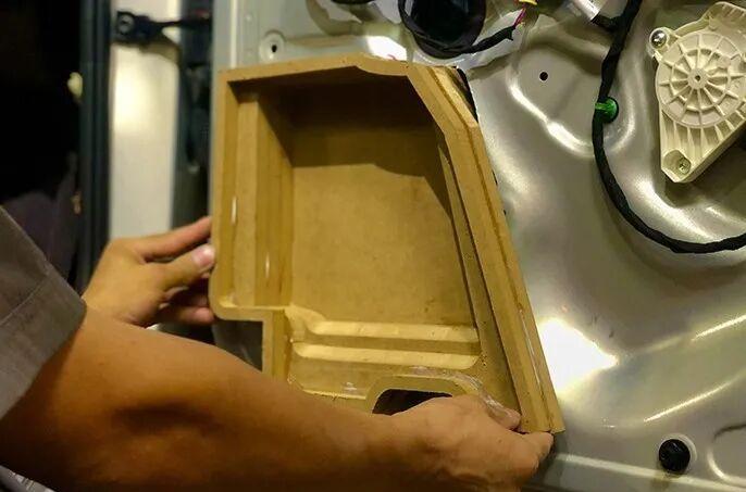 The door panel interior custom box body is assembled, fixed and finished with the final effect of the preliminary treatment. A robust, sealed and volume-accurate acoustic environment has been formed.