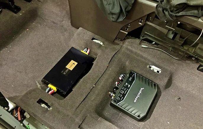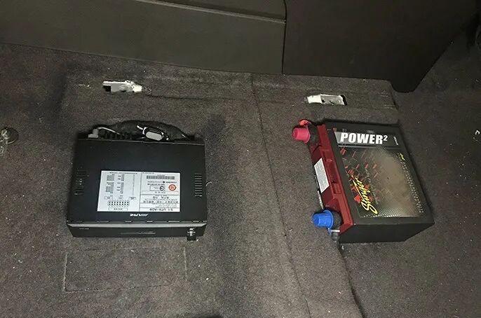 The Laifu single-channel power amplifier, which is responsible for driving the subwoofer, and the Biwei power manager, which is used to purify and stabilize the power supply of the whole vehicle, are installed side by side under the passenger seat, with regular layout and good heat dissipation.