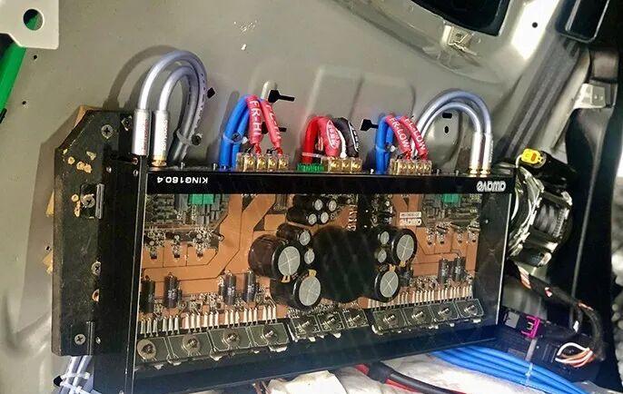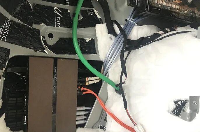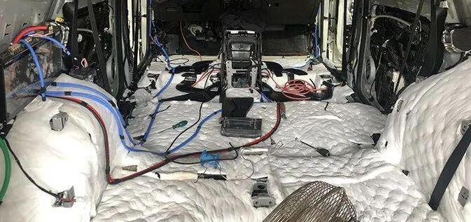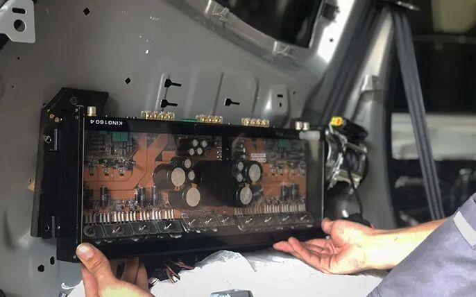 After the successful completion of the entire vehicle sound insulation and noise reduction project, the standardized layout of the entire vehicle audio system wires began. All power lines, signal lines and speaker lines follow the principle of “shortest path, avoiding interference and firm fixation”, which is the basic guarantee of good sound.
