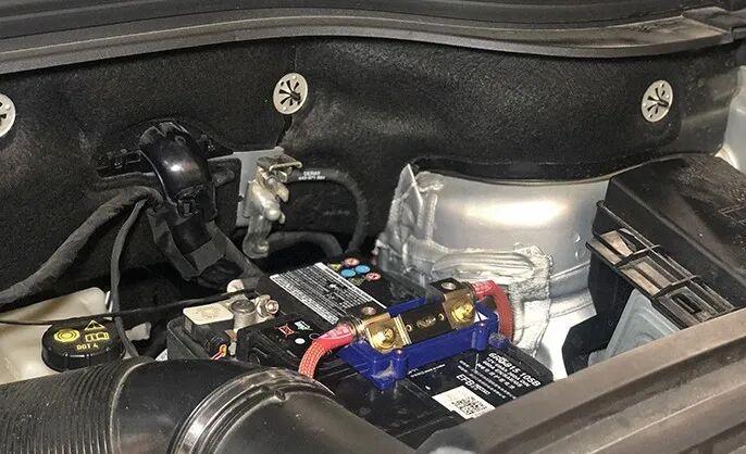 Installation details of the safety holder for the main power supply of the sound system. As the safety patron saint of the whole system, its installation position, fixing method and wire diameter selection are all very important.