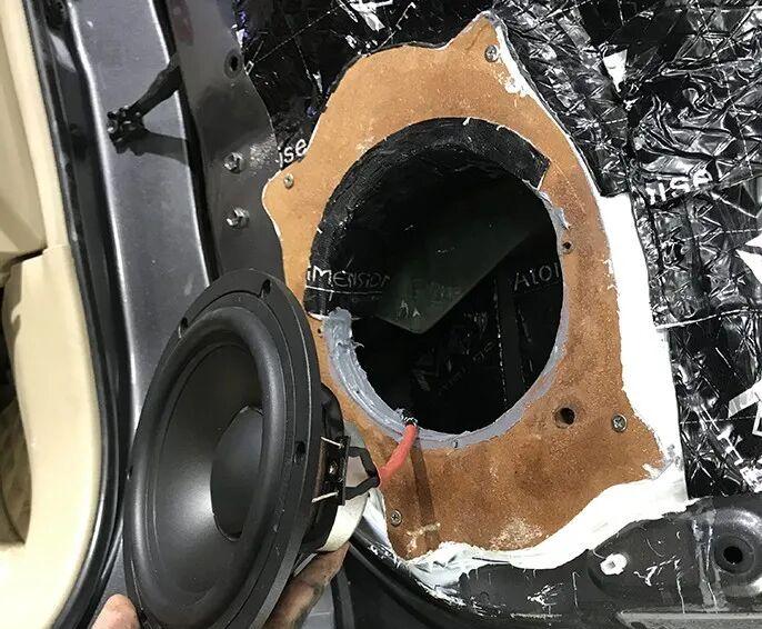 Next is the installation of the mid-woofer unit. We made full use of the special speaker gasket that the owner had equipped during the previous modification, and on the premise of ensuring a firm and reliable installation foundation, we installed the Aiwei KING series mid-woofer unit in the original position of the door.