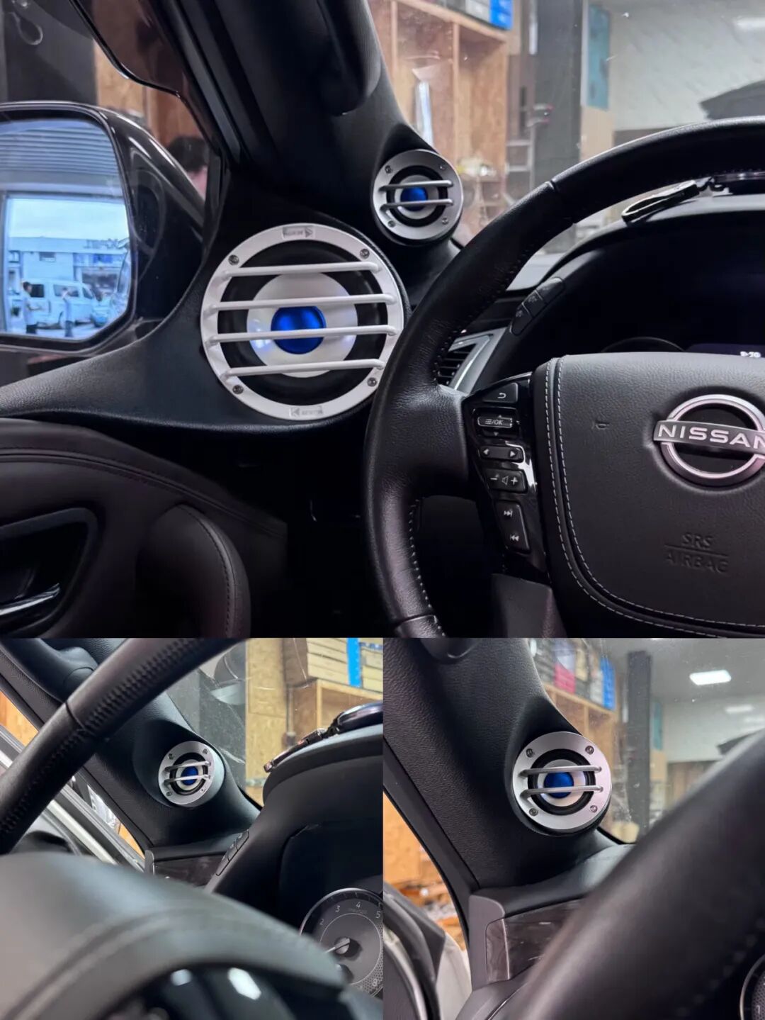 After rigorous installation and fixation, the effect of Aiwei four-inch tweeter after modification is shown in the figure below. Its installation is stable and fits perfectly with the original car interior panel, laying a solid foundation for subsequent accurate sound field positioning.