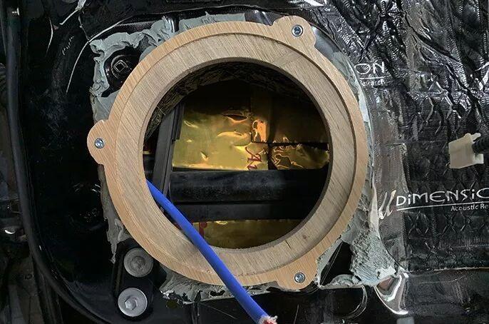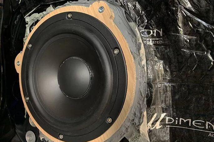 Detailed effect after the midwoofer unit is installed. The installation is stable, the wiring is standardized, and the sealing treatment is in place, laying a solid foundation for the best sound quality performance.