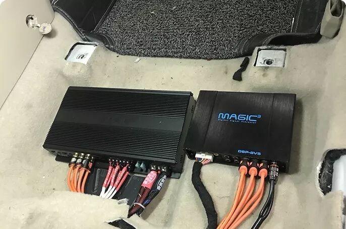 The core electronic equipment is installed in a concealed way. The Magic Cube DSP processor and six-channel power amplifier are integrated and installed under the main driver’s seat, which not only saves space, but also facilitates debugging and maintenance.