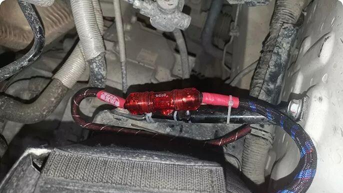In order to ensure the electricity safety of the entire high-power audio system, we have installed a professional high-current power supply safety holder on the battery side, which is an indispensable safety guarantee link in professional modification.