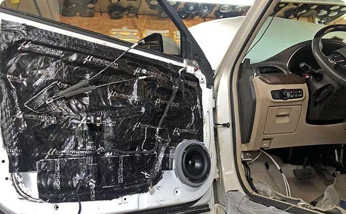 After the construction started, when disassembling the door panel, we found that the sound insulation project constructed by the previous modification institute did not meet the strict technological standards of our store in terms of material fit and coverage integrity. In order to ensure the best acoustic environment and loudspeaker performance, we decided to reconstruct the sound insulation of the four doors. The figure below clearly shows the significant differences in details and standardization between our standardized construction (right) and previous construction (left).