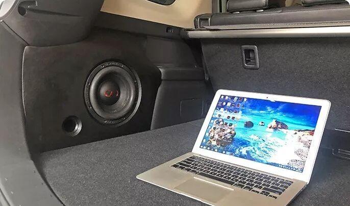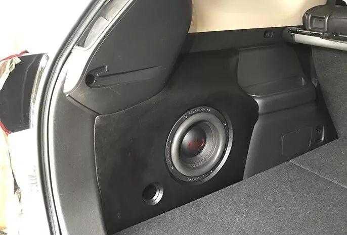 The final effect display after the installation of American DD eight-inch subwoofer unit and customized complementary box is completed. The box body is integrated with the outline of the original car, retaining the complete use space of the trunk to the greatest extent.