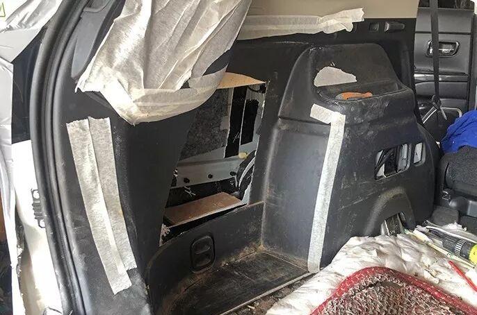 After careful calculation, we chose to customize the complementary box to the sunken space on the left side of the trunk. In order to meet the precise requirements of the DD unit for the box volume, it is necessary to carry out small and fine cutting on the original car interior panel. All cut original car trim parts are properly kept in the car, ensuring that the owner can perfectly restore them at any time if necessary in the future, which reflects our commitment to respecting the original car structure and protecting the interests of customers.