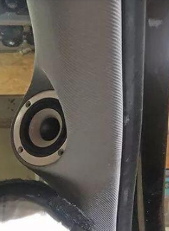 A-pillar tweeter was thoroughly repositioned and reversed. We removed the original inaccurate installation basis, and recalculated and positioned the installation angle and height of the Biwei A 50 III unit based on its technical characteristics and the best listening phonemes in the car to ensure accurate sound wave pointing.