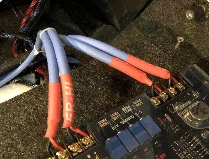 Barney brand high-performance speaker cable for connecting power amplifiers to speakers.