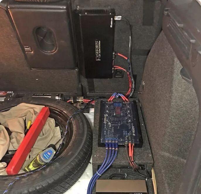 After comprehensive reinstallation, wire upgrade and final fine debugging, the overall visual effect of the vehicle audio system after the transformation is completed. All components are stably installed and concealed, reflecting the professional modification level.