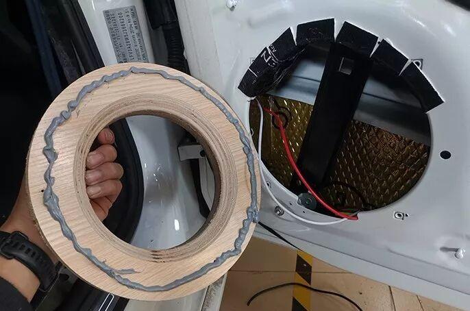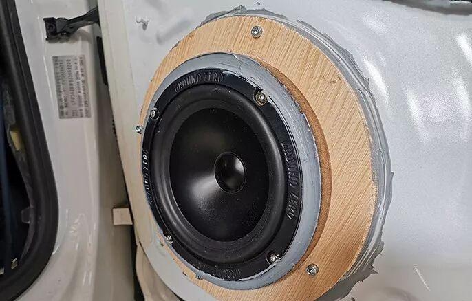 The installation of the woofer unit in the door is the basic link that affects the overall sound quality. The first is to customize a high-density waterproof wooden gasket for the horn, and its size is precisely made in strict accordance with the structure of the original door panel horn position and the installation requirements of the horn. The quality of the installation process is directly related to the final presentation of the sound effect, and the installation of the middle and bass unit is particularly important. It profoundly affects the clarity and elasticity of the middle and low frequency bands, the thickness of the human voice and the solidity of the musical instrument performance, which can be called the cornerstone of the system sound.