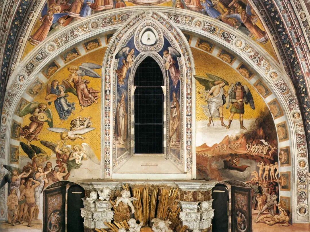 The interior of the church looks magnificent at first glance, but the soft radiance shining through the alabaster windows and the layout of the cross-shaped nave separated by arched colonnades are closer to the calmness of ancient Roman style and the simplicity of early Christianity than to the fierceness of typical Gothic style or the complexity of Catholicism. However, the Chapel of San Brizio in the side hall is an exception-its magnificence and dramatic tension are no less than those of the Sistine Chapel in the Vatican. Luca Signorelli’s series of “Revelation” murals painted between 1499 and 1504 hang high on the wall, among which “The Last Judgment” is particularly shocking. Legend has it that thirty years later, Michelangelo drew inspiration when he created murals with the same theme in the Vatican.