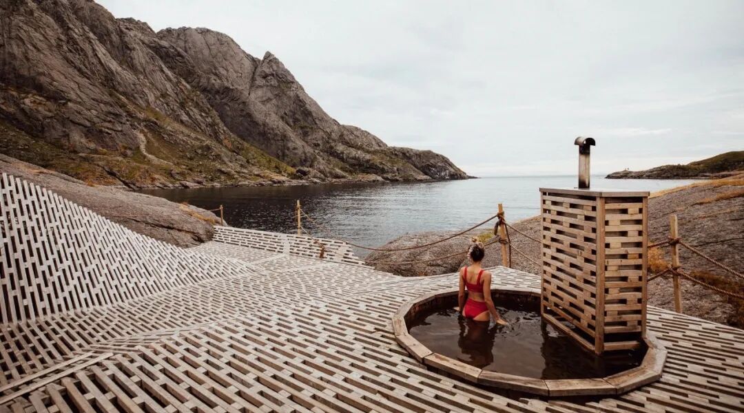 After the hike, enjoy a glass of sparkling wine with the sound of the waves, and then dispel your fatigue in the open-air hot tub and sauna at the end of the fjord.