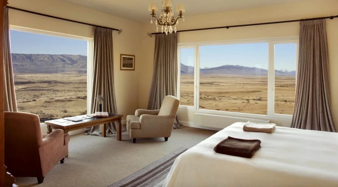 Sleep until you wake up naturally in the morning, listen to the birds, breathe the clear air, and enjoy the sunshine to cover the mountains with orange red. Then drive for about 4 hours across the border between Chile and Argentina, arrive in Calafate, Argentina, and stay in a wild luxury hotel transformed from an ancient ranch manor and surrounded by boundless wilderness.