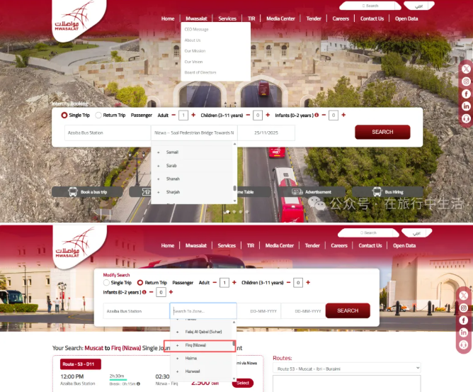 From Muscat to Nizwa, how to buy a bus ticket?