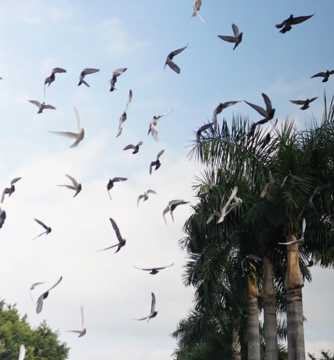 They fly in the blue sky, shuttling between the branches and leaves, freely and calmly, as if writing a simple but vivid poem. This natural scene makes people feel tranquil and flowing vitality at the same time.