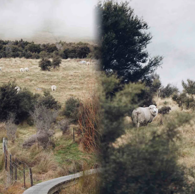 Turning around the corner, there are several houses scattered on the hillside on the left side, not far awaySheepIs quietly looking down for food. Perhaps disturbed by our steps, one of them looked up, his eyes calm and alienated. Swimming through the grass on the lake on the rightBlack SwanCaught the eye. They float elegantly on the water, peacefully immersed in their own world, and paint a quiet landscape painting with grass, lakes and distant mountains.
