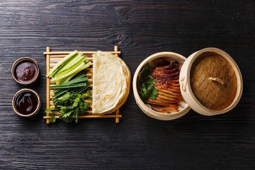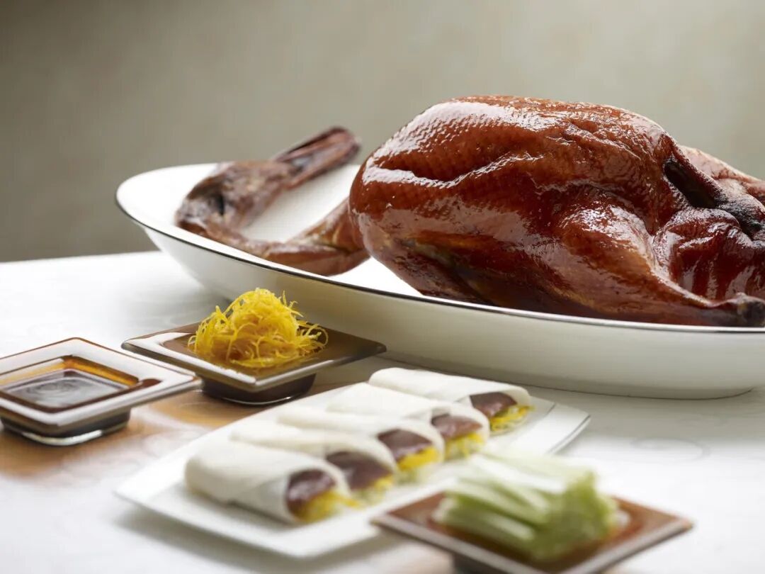 Beijing roast duck is roasted with fruit wood, with crispy skin and tender meat. It is often eaten with pancakes, sweet noodle sauce and shredded onions. It is a representative famous dish in China.