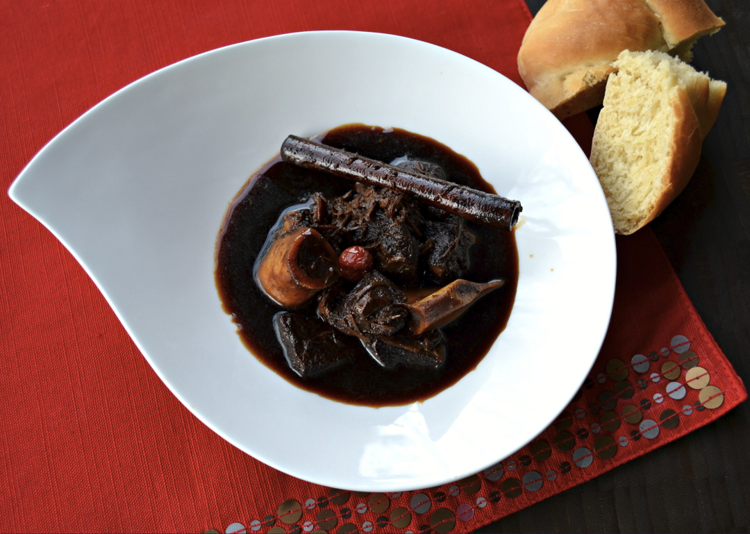 Pepper pot is a traditional Guyanese stew seasoned with cinnamon, cassava juice and peppers. It is often eaten with bread or rice during Christmas.