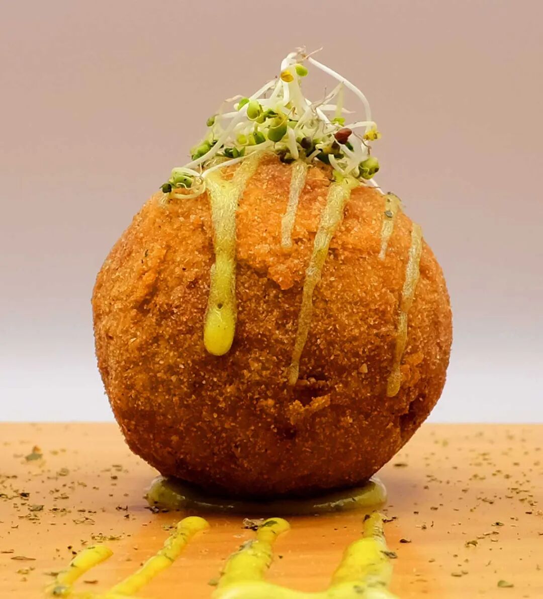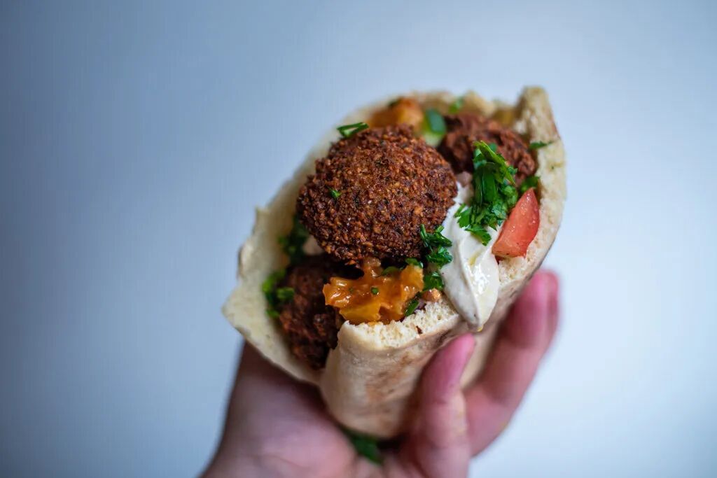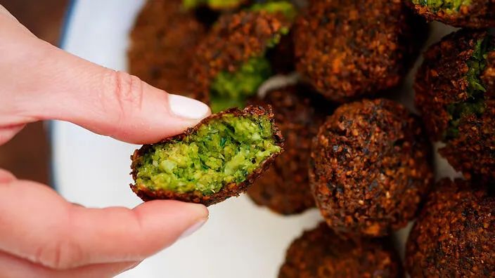 Fried bean balls are a popular street food in Israel, made from hummus made into balls and fried. Often served with pita bread, hummus, tahini and fresh vegetables, it’s a classic vegetarian option in the Middle East.