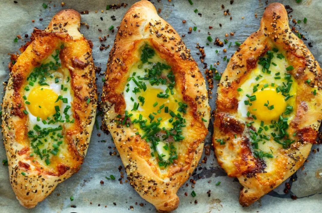 Cachapuri is a traditional Georgian cuisine. It is usually covered with cheese on fermented dough, with raw eggs in the middle and baked until it is crisp on the outside and soft on the inside. Common variants include the boat-shaped Azar cheesecake and Imereti cheesecake, which are popular in Georgia and Russia.