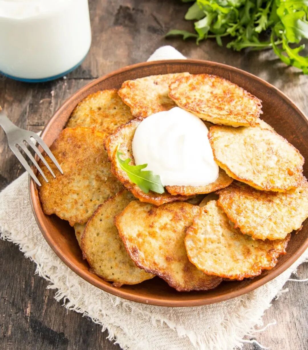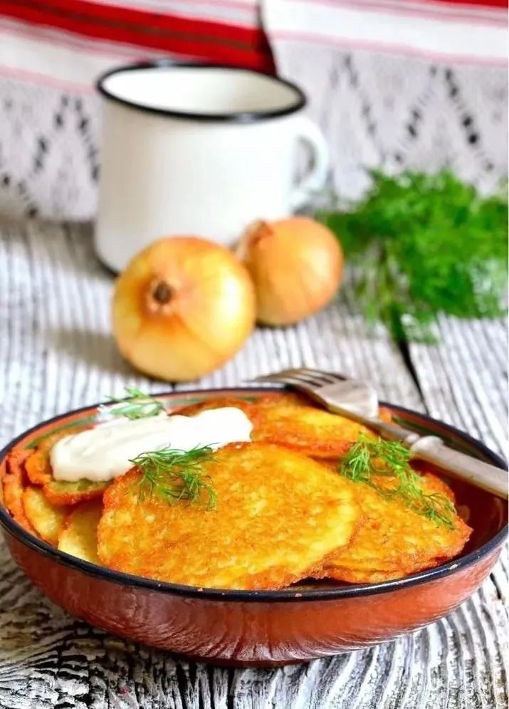 Delaniki is a traditional Belarusian hash brown, crisp on the outside and soft on the inside. It is often served with sour cream or applesauce.
