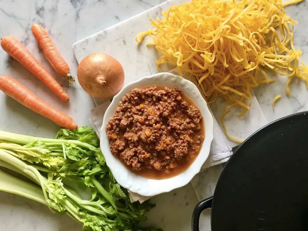 Slow-simmered with ground beef, vegetables and tomatoes, Bolognese is traditionally served with fettuccine or lasagna and is a classic of Italian cuisine.