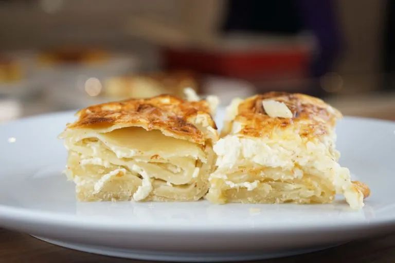 Musaka is a traditional Greek dish, which is made of eggplant, potato and tomato meat sauce stacked in layers, and baked with creamy white sauce on the surface. It has a rich and rich taste.
